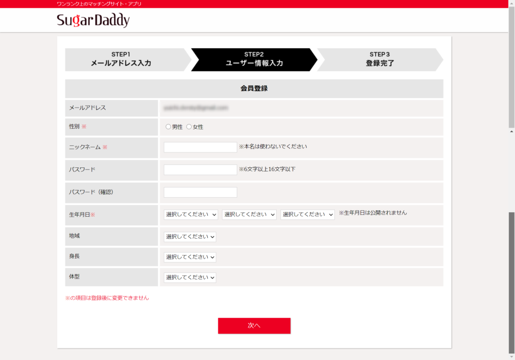 地域、年齢、身長、職業などなど子の属性で検索します。