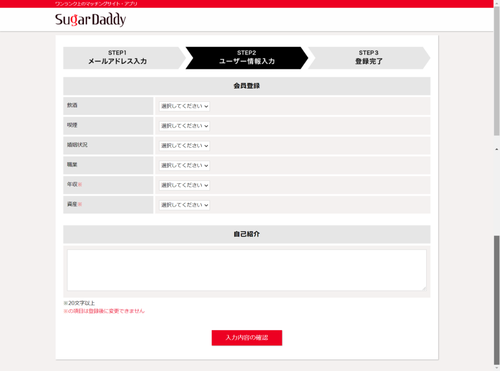 定型の入力項目はなるべく埋めるようにしましょう。